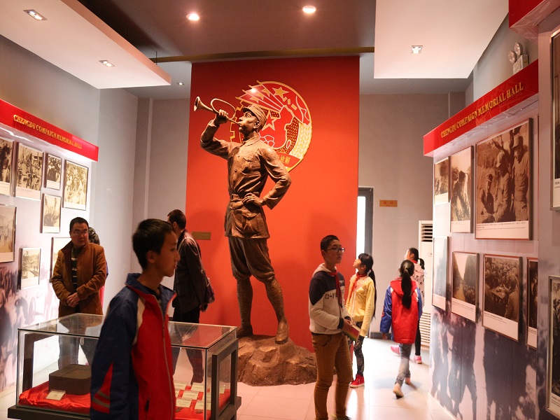然后我们来到了纪念馆。在这个巍峨峻拔的建筑物里陈列着,当时新四方军战利品,和它们在抗战时用的简陋的武器,还有一些革命烈士生平的奖章以及在这里发生的较大战役。让我久久不能遗忘的只有那些在门口展示的图片,在图片上,有着许多惨绝人寰的坏事。要不是有共产党,我不知道何时我们的中国才会振兴。