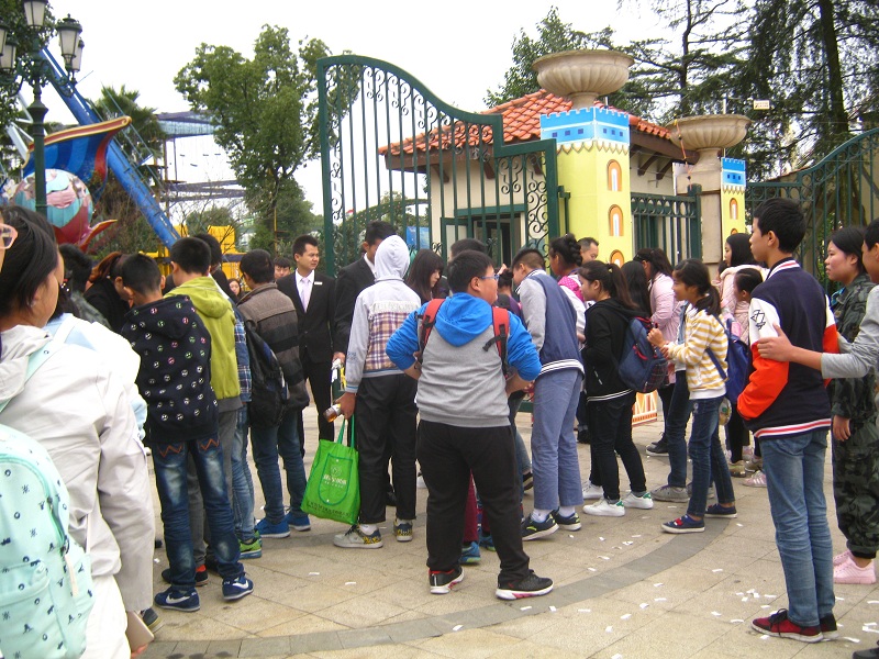星期五早晨,我们很早就起床了,大家心里是多么的激动啊。 到食堂吃过早饭,我们就到教室里等。一辆辆大客车开进了校园,我们的心越发的激动了。 广播里通知集合了,我们依次登上车出发了。 在谈笑中,我们就到了目的地——国色天香。在门口戴上手环,我们就进去了。 国色天香真是大,游玩的项目真多。同学们都朝自己喜欢的项目去了,有玩过山车的,有坐大摆锤,有上海盗船的,可我却不知道要玩什么。我恐高,那些高空的项目我都不敢去。于是我就去逛食品摊,看到没吃过的我就买来吃,一边逛,一边买,吃了又去逛,只要没吃过的,我都买来品尝了。