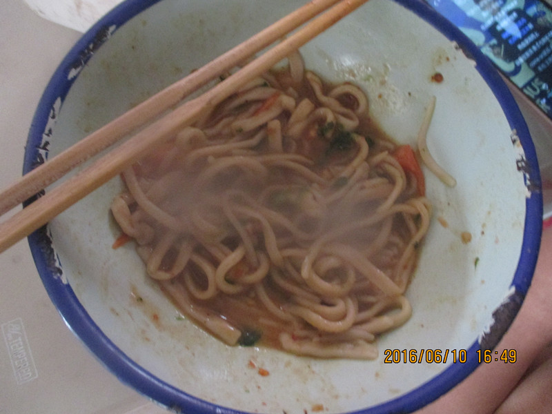 接着,妈妈用菜刀把长面条分成了几片面片。我又选择一个中等宽的档位,妈妈在上面扶着,一只手转着,我在下面用手源源不断的接着出来的面条,不一会儿面条就全出来了。面条细细的,长长的,不过就是太湿了,都快要黏到一起了,我连忙给它撒了一点干面粉,面条就不容易黏手了。