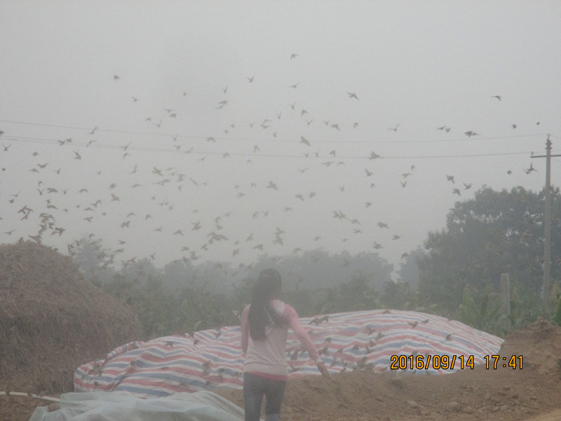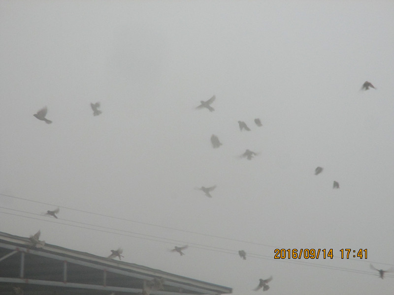 郭康跑过去,跑到帐子上,麻雀如同惊弓之鸟,搜的一下散开飞走了,好像一个棋盘上不满了棋子,一会儿飞成云朵的样子,一会儿又飞成人形,飞来飞去,最后又回到帐子上了。麻雀真胆小啊!