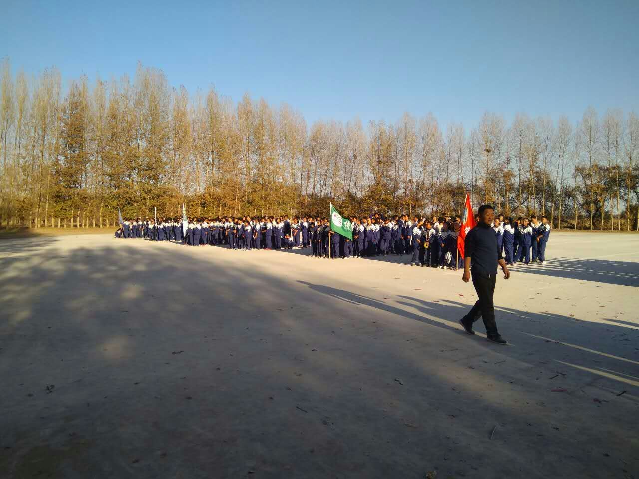 接下来的比赛就更有趣了。这项运动需要两个人的配合才能完成,而且两个人还必须配合默契,先前经过训练才能很好地完成。两个人站在一起,用红布把一人的左腿和另一人的右腿绑在一起,两个人用"三只脚"走路,先到终点为胜。有的同学心急,加上两人配合不太好,走着走着,不小心就跌倒了;有的同学配合较好,越走越快,直抵胜利的终点。