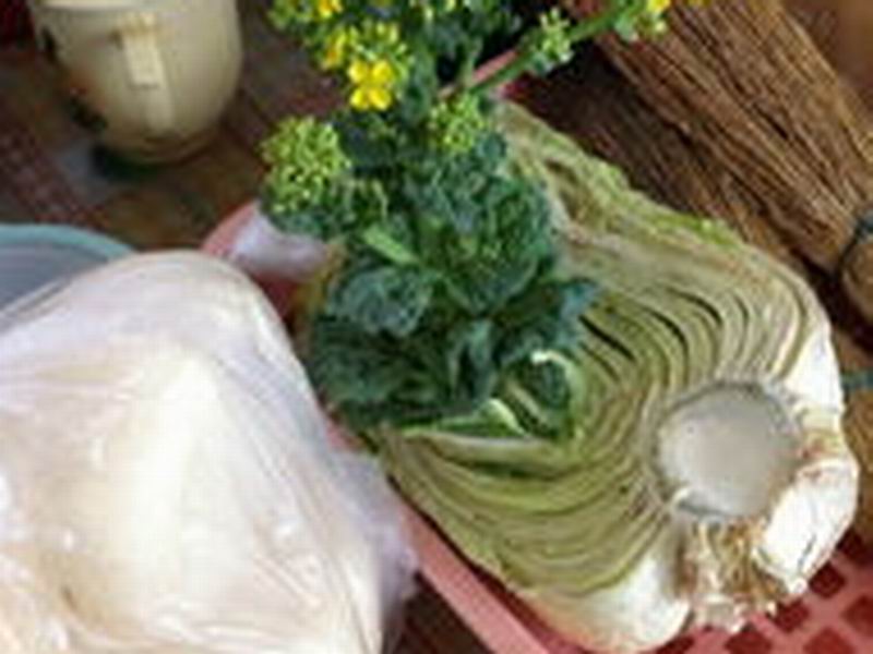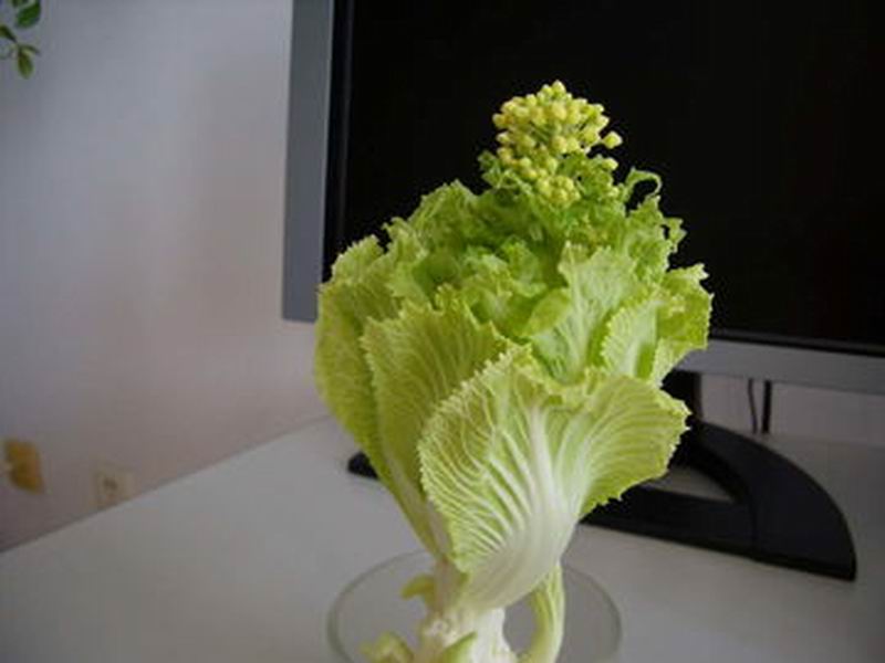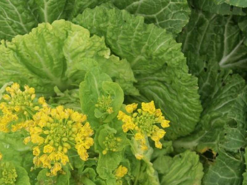 到了中午的时候,当我再次来到白菜地里时,我看到在白菜的旁边,死着一层的虫子,而叶片上只有灰迹。我感到非常的神奇,也为农村人的治害虫的土办法而惊叹。一片片碧绿的叶子挨挨挤挤的,外层包裹着里层,形成了一个圆球状。有的中间冒出了一枚又粗又绿的花亭,还未舒展的花枝上点缀着一颗珍珠似的花蕾。有的还是绿色的,有的变成了金黄色,这说明有的已经成熟了。但这时还不能采收,因为叶肉还不饱满,旋心还不结实。只有降霜雪时,它的膘肉才会长到最厚,品质才是最好的。