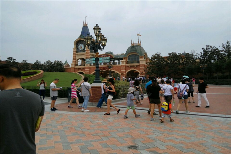 7月1日,我们在姚老师、高老师等三位老师的带领下,怀着激动的心情乘坐了半小时的房车,终于到达了我梦寐以求的迪士尼乐园。一步、两步……还未跨进大门,一抬头便看见一口巨大的钟高高地嵌在大门的一个角上。钟上的米奇正开心地指着乐园的某个角落。啊!真美!