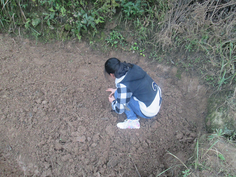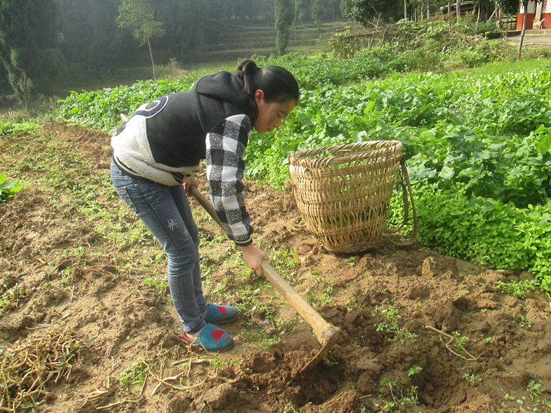 婆婆说,洋姜是刨不尽的,因为它刨不尽,所以能长很多年。开始挖了,我们先把那些已经枯死的杆刨去,然后再按照一列列的顺序把洋姜刨出。