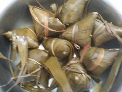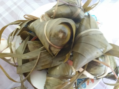 粽子的形状既不是方的,也不是圆的,很特别。看上去是一种墨绿的颜色,这墨绿的便是粽叶。在粽子的里面包着糯米,这糯米可是要经过长时间的煮,才可以包在粽叶里。为了让粽子里包上鲜红的大枣。煮熟以后,把墨绿的粽子剥开,便是香喷喷的雪白的珍珠,让鲜红的枣映衬着,显得更加艳丽,更让人有一种想要迫不及待地吃到里面食物的感觉。终于可以开吃了,一下手,就感觉特别的黏,都可以把我的牙粘下来。这种味道真是让人有一种吃了就再也忘不掉的感觉。所以,男女老少都爱吃这种营养又健康的美食。
