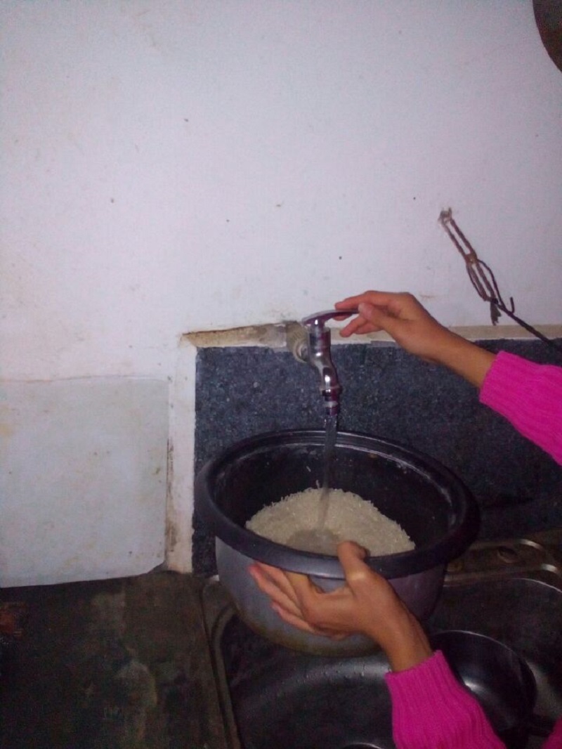 "哗——"我终于挤出了水龙头,见到了久违的光明。我会直接进入下水道吗?我的心提到了嗓子眼。 "哗——"我进到一个电饭锅中。"淘米要用锅接着水洗,这样可以节约用水!"我仰头一看,哟!一位可爱的小我娘正用我们淘米呢。渐渐地,我和兄弟姐妹们变成了乳白色。呵,现在我又叫淘米水了,我暗暗想到。