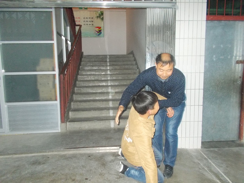汤老师平常对我们可好了,快看,孙明从楼梯道猛冲下来,一不小心,摔了一跤,汤老师见了,赶忙走过去扶起他,并找来酒精消毒,贴了几个创口贴,扶他到宿舍休息。