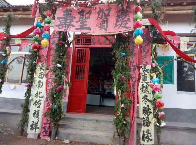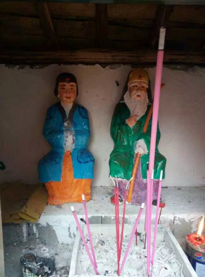 再看到的就是一个很小的土房子,上面有一条横幅一方土地,不用猜,肯定是土地公公和土地婆婆啦。
