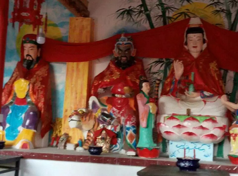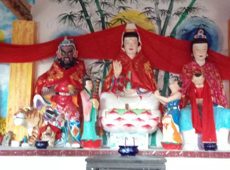 首先,看到的是正堂,这是刚刚修建的寺庙。看,这些栩栩如生的雕像,正在正堂里,分别是新春老爷、武财神、观音菩萨、送子娘娘、松百万,他们足有一个青年人那么大,我真心佩服那些雕像的人。