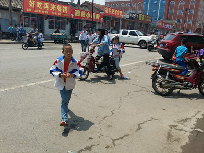 大风"呼呼"地吹着,黄沙漫天,我正和妈妈准备去姥姥家。街上几乎没有人,垃圾满天飞,有的车子被风刮倒在地,家中的人们会穿上厚厚的衣服把车子推回家去。我们到了姥姥家门口,有几辆车子挡住了停车位,我便下去把自行车挪到一边去,可我害怕车子被风刮倒,就把它立在了那边的墙角里,我看了看那些倒地的车子,不如把它们也立在墙角吧,我毫不犹豫地跑到车左边,把它们一一立起来,放在墙角,我看到自己的"劳动成果"很是开心。妈妈把车停好,我们俩便向楼道走去。可是有两辆车子挡住了我们的"进程"。