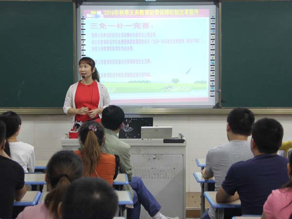 会上,各班主任向与会家长认真解读了"三免一补一完善":免除义务教育阶段学生学杂费并补助学校公用经费;向义务教育阶段学生免费提供国家课程教科书;免收义务教育阶段学生作业本费。
