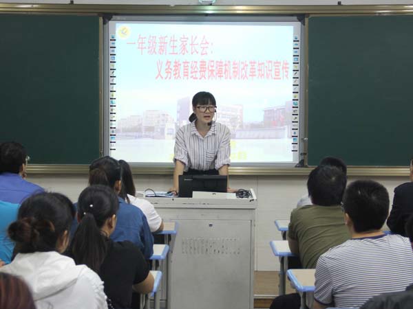 9月20日,我校召开一年级义务教育经费保障机制改革政策宣传家长会。为进一步提高义务教育经费保障机制改革的社会知晓度和满意度,更好的开展义务教育经费保障机制改革集中宣传月活动。