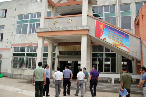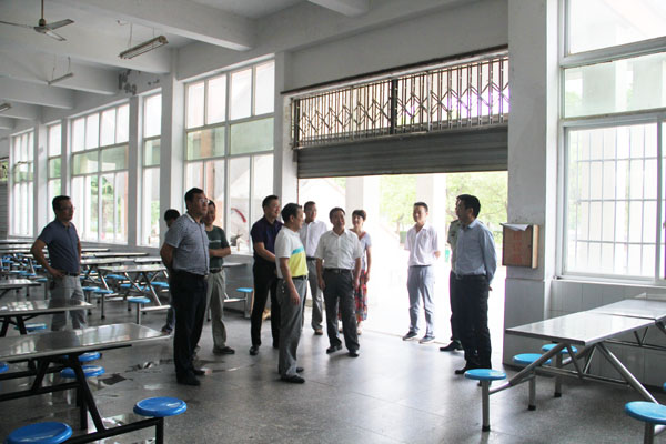 检查组一行听取了学校屈校长有关教师"无校籍"管理试点情况、课改"三段六步"教学模式尝试现状、新学期打算等工作汇报。实地察看了校容校貌、师生精神面貌、教学秩序、收费公示、食堂寝室卫生等。
