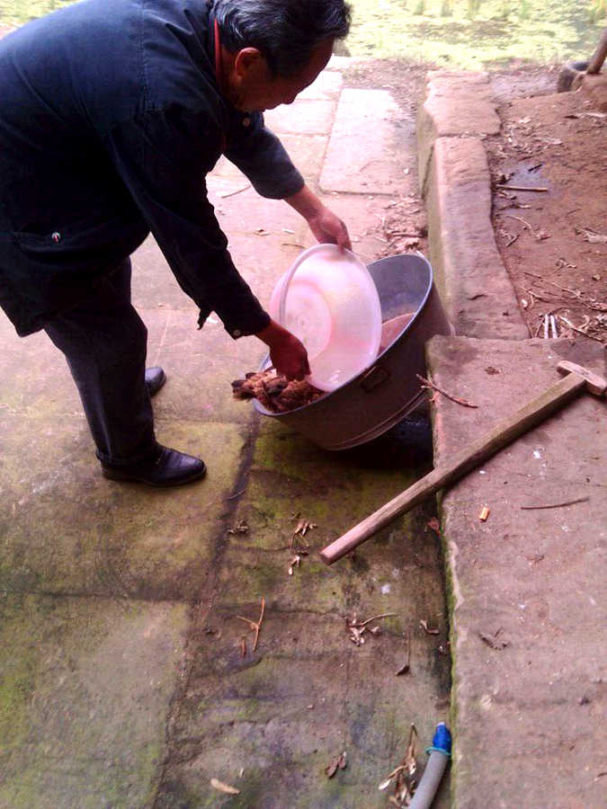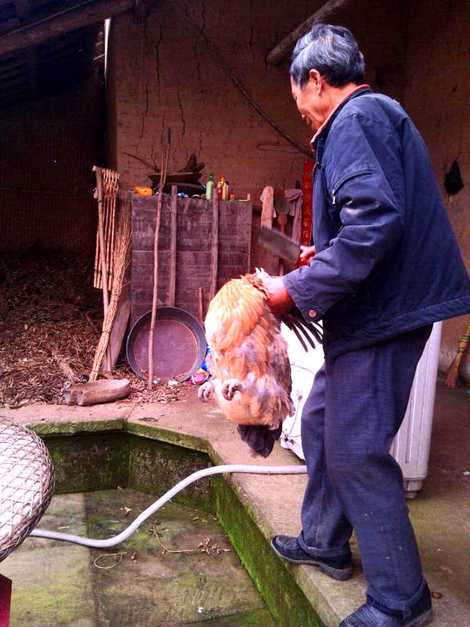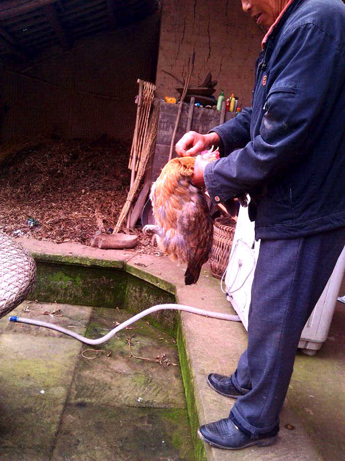 大姑爷先从鸡圈里挑了一只很大的母鸡,听大姑爷说,它不能下蛋了,所以才要被我们吃掉。唉,小鸡,让我为你默哀三分钟。