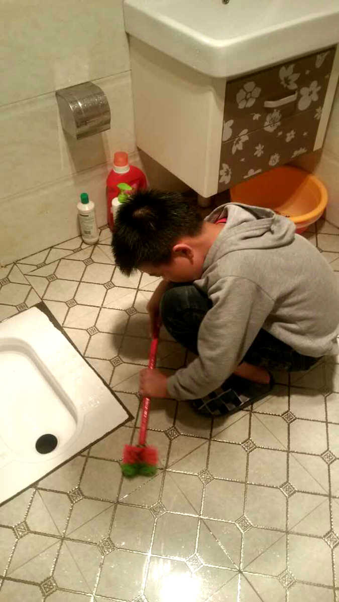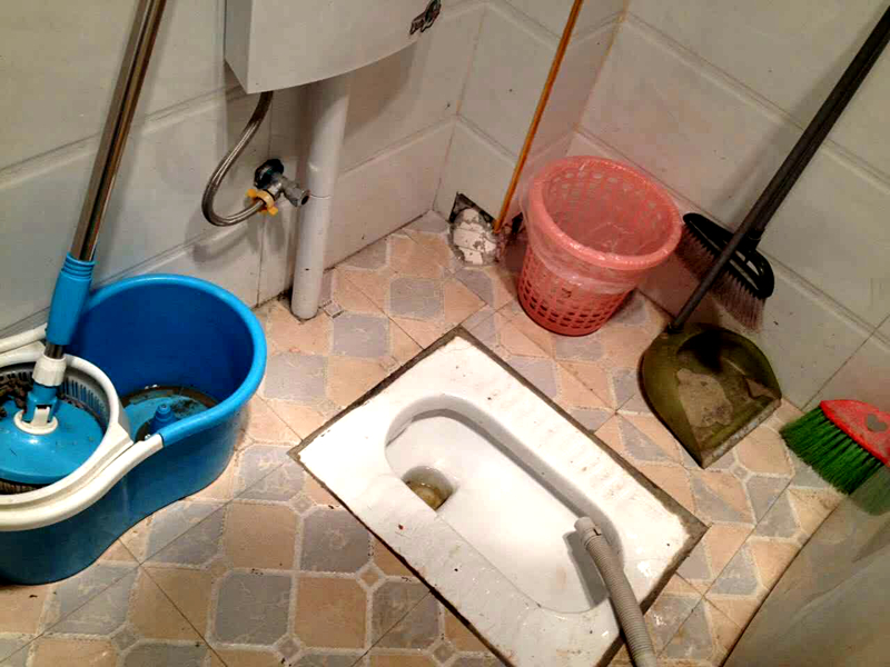 今天,当我去上厕所的时候,发现厕所里面污垢到处都是,特别是便槽里,污垢尤其多,而且还散发出一股浓浓的异味,我实在是受不了了。于是我决定给厕所洗个澡,让它焕发崭新的面孔。