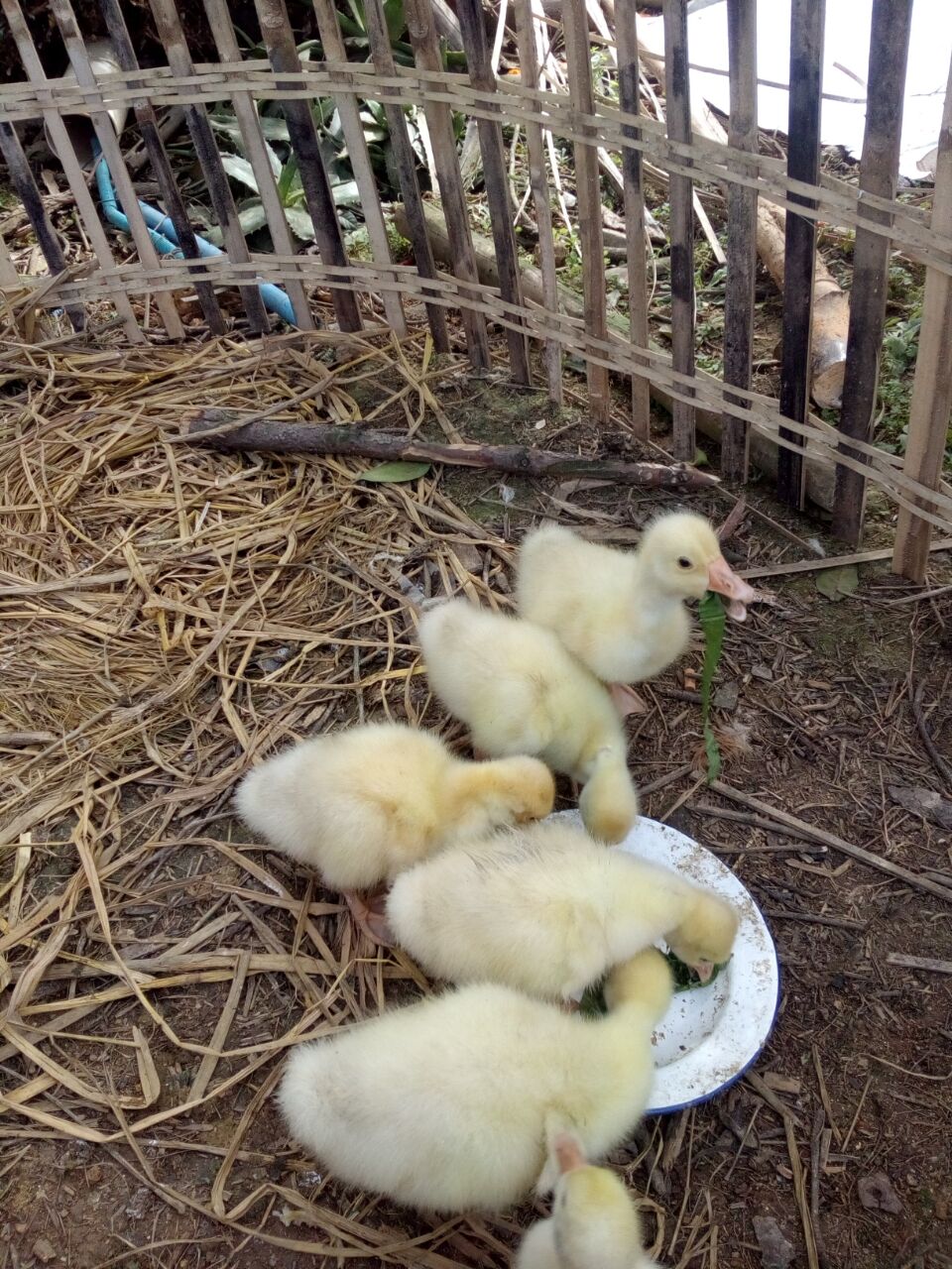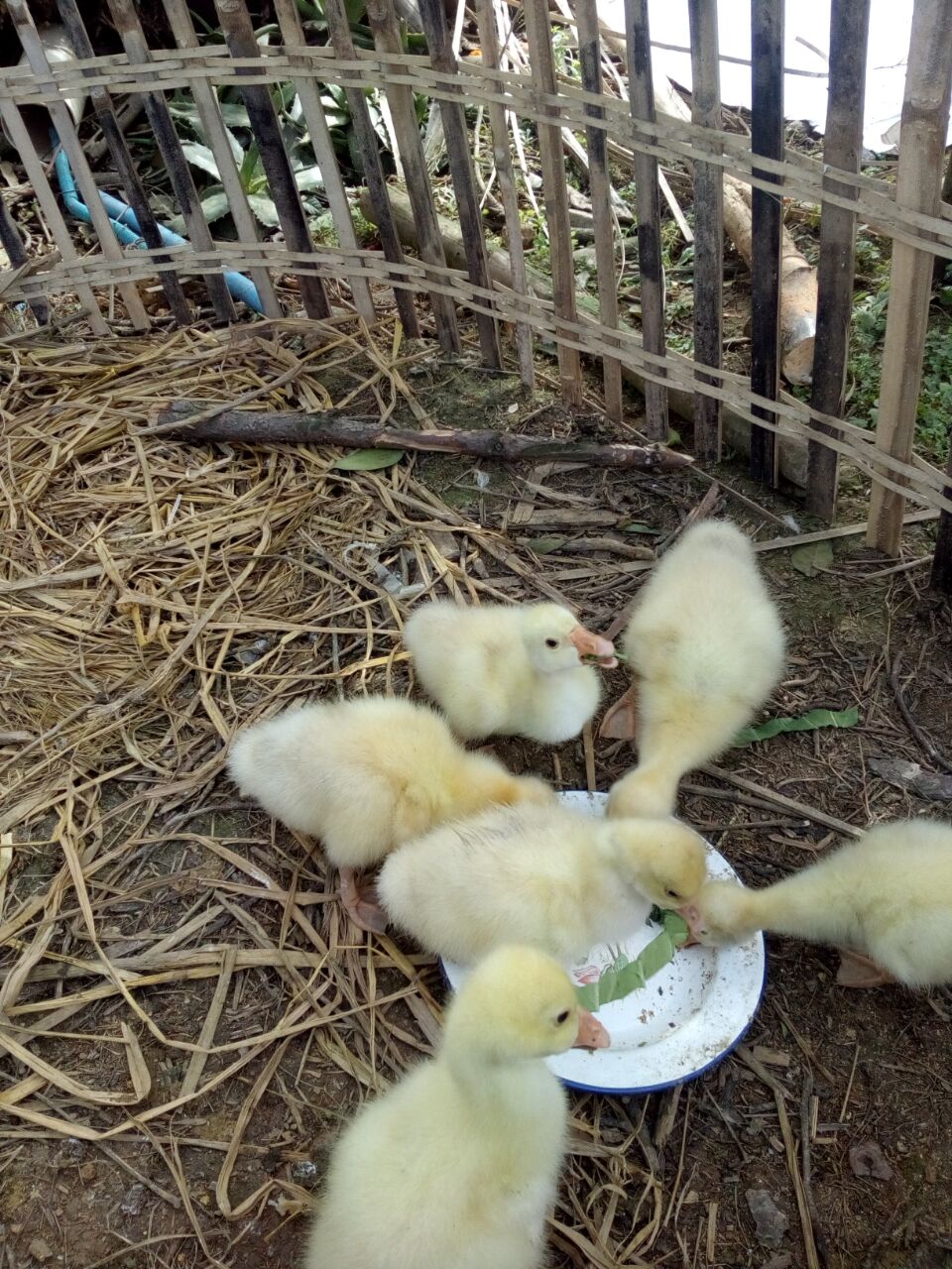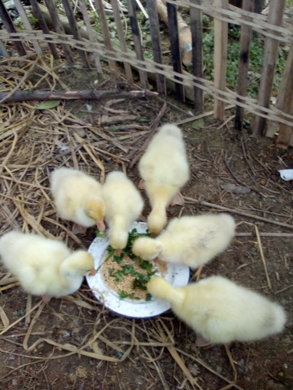 这群小鹅与我一同吃饭,它们吃的是菜叶加饲料的"三明治"真有趣!有的小鹅很淘气,去抢另一只小鹅的食物,抢的很激烈,一只小鹅咬住菜叶,另一只小鹅也咬住菜叶,都把菜叶绷断了,然后飞快地把抢到的菜叶吞下去。最引人注目的小鹅,也就是最贪吃的那只,它每次吃饭都不管不顾,总低着头狼吞虎咽地吃着,直到把自己的肚子撑得圆鼓鼓的,才罢休。