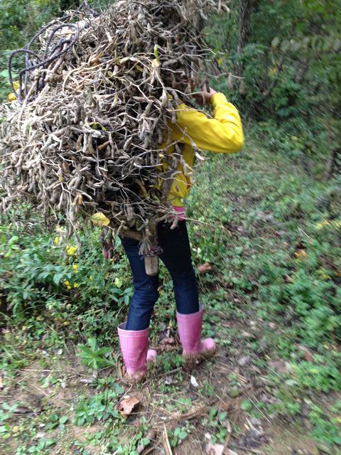拿起镰刀,手要握着黄豆杆的中间,然后将镰刀在黄豆杆的下端轻轻一割就好了,把割下的黄豆拿在手里攒成一把,在空地上放成一堆,最后再将它们绑起来。才开始,我也不熟练,把手割破了。才开始我也不熟练,最后在奶奶的指点下,渐渐熟练了。没过一会儿工夫就割完了,最后将堆好的黄豆用背夹背回家。回到家以后我发现我的肩膀都红了,虽然很痛,但我心里很开心。