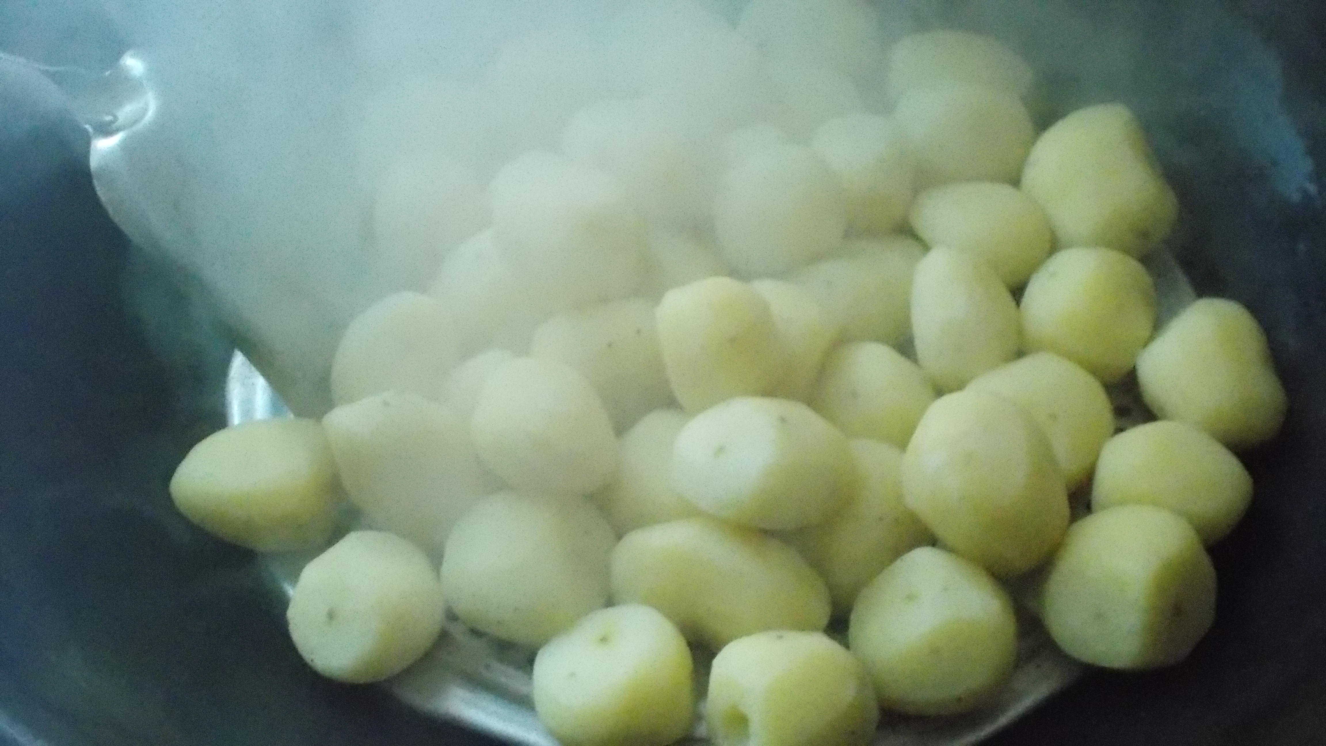 柞水洋芋,淀粉含量特别高,洋芋最早的吃法是蒸着吃,煮着吃,可吃久了,终究还会吃穷了,经过柞水人的反复研究,形成了柞水人独有的,特别爱吃的洋芋糍粑。 洋芋糍粑的做法非常简单,首先把洋芋放在锅中蒸熟,等洋芋表面泛黄,就好了。在蒸的时候,火候一定均匀,不能太大,也不能太小,这样蒸出来的洋芋才好。