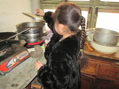 我不甘心,又加了点水,继续炒。原来就一团糟的米饭变得更加混乱了,有些米粒都蹦出了锅外,它们在对我的"胡闹"表示抗议。无奈我沉浸在自己的世界中,没有去顾及它们的感受。忽然,我闻到了一股烧焦了的味道。我连忙关了煤气,检查哪里出了问题。就在这时,开门的声音响起了,我连忙出去迎接。原来是妈妈回来了。妈妈一下子就闻到厨房里有"异味",便走进了厨房,巡视着四周。当她看到锅里那一团黑乎乎的东西时,不禁笑出了声来,她说:"这是什么?"我一本正经地回答道:"这是我做的炒饭,很香的,你要不要来一口。"妈妈一边笑着,一边把炒饭倒进了垃圾桶。