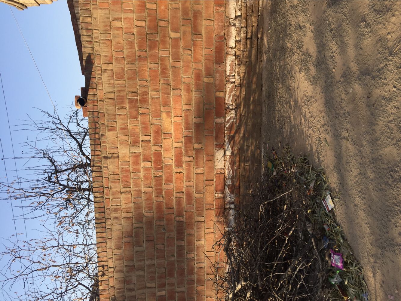 父亲总觉得我们家的墙不好。我们家的墙是用土做成的,土里和着些草,就被做成了墙。待泥干了,墙也就硬了,但经过好几年的风吹日晒,墙倾斜了,向院子里倾着。父亲便找来两根大圆木,一头顶到地上,一头支在墙上。