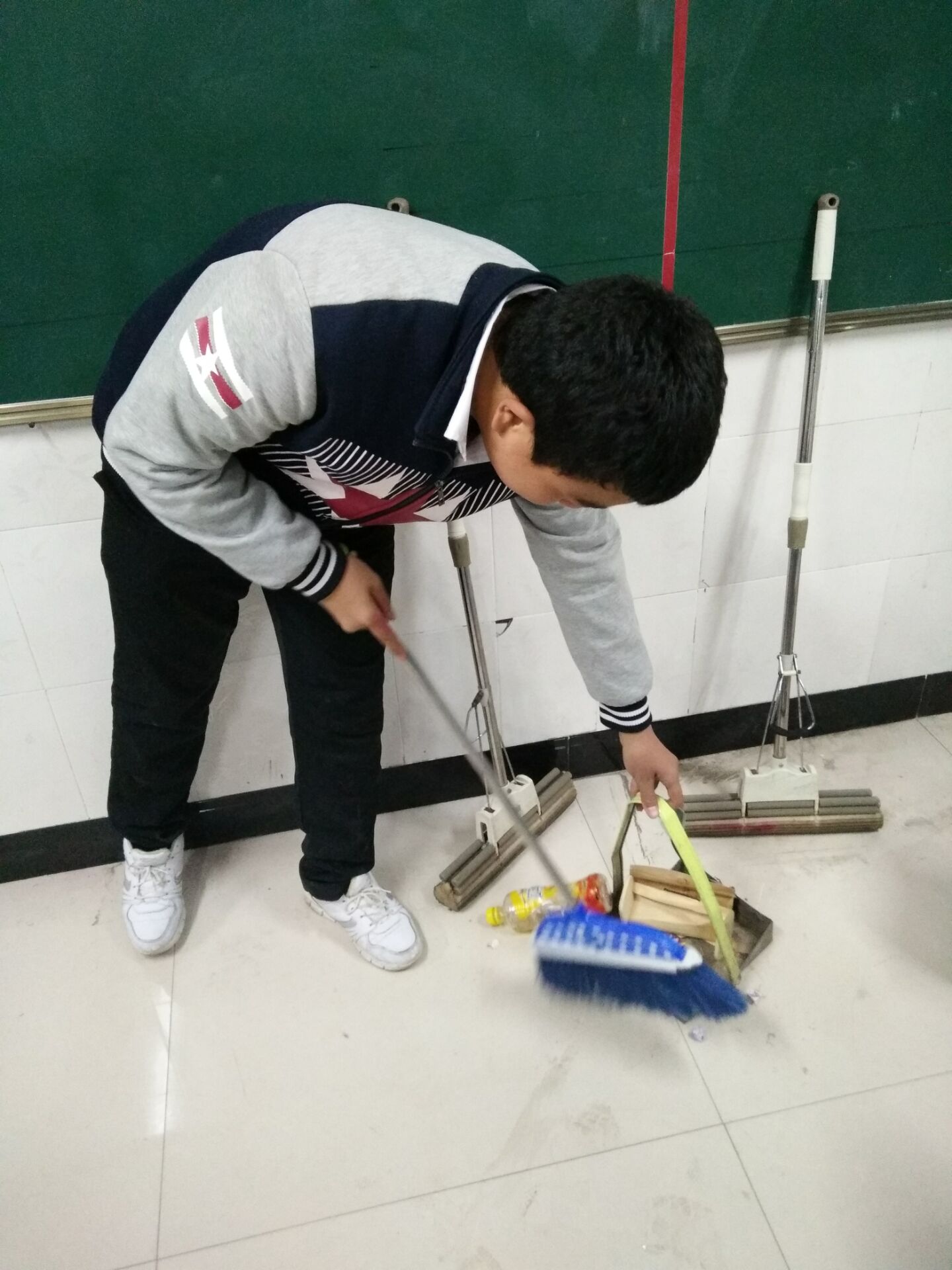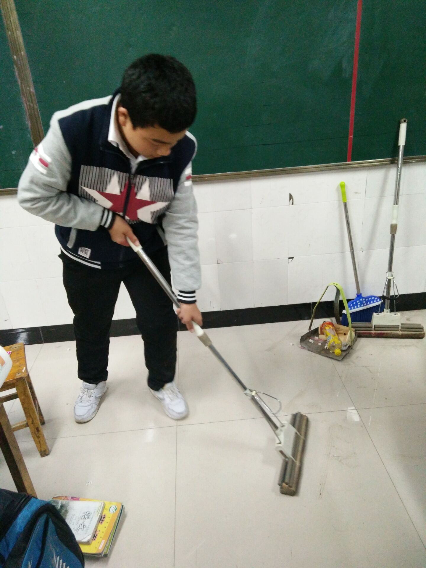 因为他非常有力,所以班上的一些劳动他也经常参加。扫地,拖地他每次都抢着去干。早晨,我们还在床上做梦时,他已早早的到了教室,当我们到了教室之后,不得不惊讶,教室如水洗般干净。
