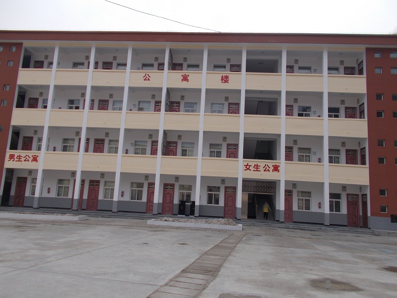 这幢楼便是我们居住的宿舍楼。宿舍楼高达四层,每层都用铝合金隔开,分为男生和女生两边,并且每个宿舍都配有马桶、储物柜,简直就是高档宿舍。