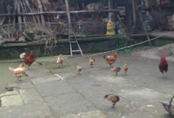 下午我要给我家的猪宰红薯,我顺便找了几个大红薯,把它们切成粒状,撒给小鸡。它们吃的很快,你撒多少,它们就吃多少。
