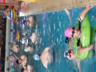 游泳的水有一米四那么高,我踩下去还露出一头。因此没我想象的那么吓人。第一节课主要是以闷水为主,就是锻炼我们的憋气能力。两个小时的时间基本就是在水中度过的。第二节课老师开始教我们漂,一开始我低下头,抬起腿,生怕自己沉下去,老师让我先扶着杆儿,一点一点慢慢练习。于是,第二节课两个小时的时间也是基本在水中度过的。第三第四节课,老师教我们蛙泳的蹬腿动作和手势,接着老师就让我们自己下水实践,我们的姿势比较到位,在水里能游两下,但还是浮不起来。到第七八节课的时候,老师开始教我们换气,我自己试了试,试了好几次也没有学过,还呛了几口水,以后的五节课里老师让我们自己练习,现在我可以不借助任何工具,在水里游来游去了,每天玩两个小时总是不舍得离开。