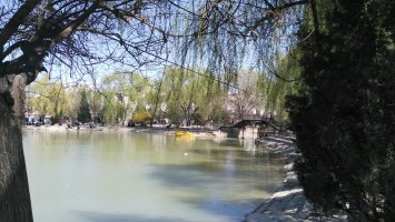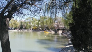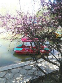 我们到了西郊公园后,准备划船。因为是早晨到哪儿,所以没有多少人,只看到了清晨的太阳和湖上的帆影。随着船桨的划动微波荡漾起的涟漪我们来到公园的中央。我们看到了桥,桥的桥身呈灰色,白堤犹如一条黑色的绸缎。