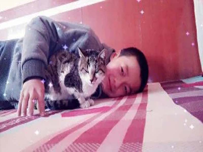 他的萌表现在方方面面,比如说:他给我取的外号"饼干",他把我的一块粉里带白的橡皮拿在手里,然后在上面画了两个眼睛,一的嘴巴,他说:"饼干,这就是你,"让后再一旁偷笑,我当时并没有生气,因为他的萌打动了我,我也笑了。