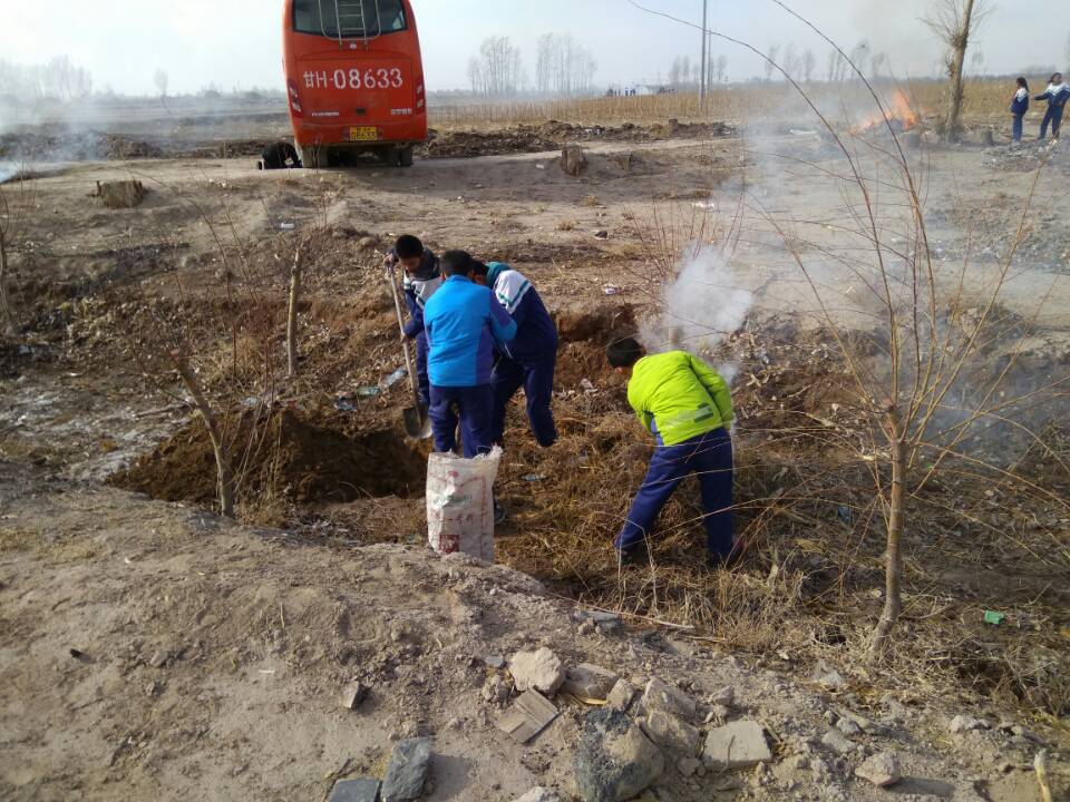 树沟里是藏污纳垢的最佳位置,因此我们不遗余力地对树沟进行整治。树沟里的枯枝败叶,一层又一层,白色的地膜挂在枝头上,向我们招手,还有生畜的粪便。树沟真是个不容易清理的地方。