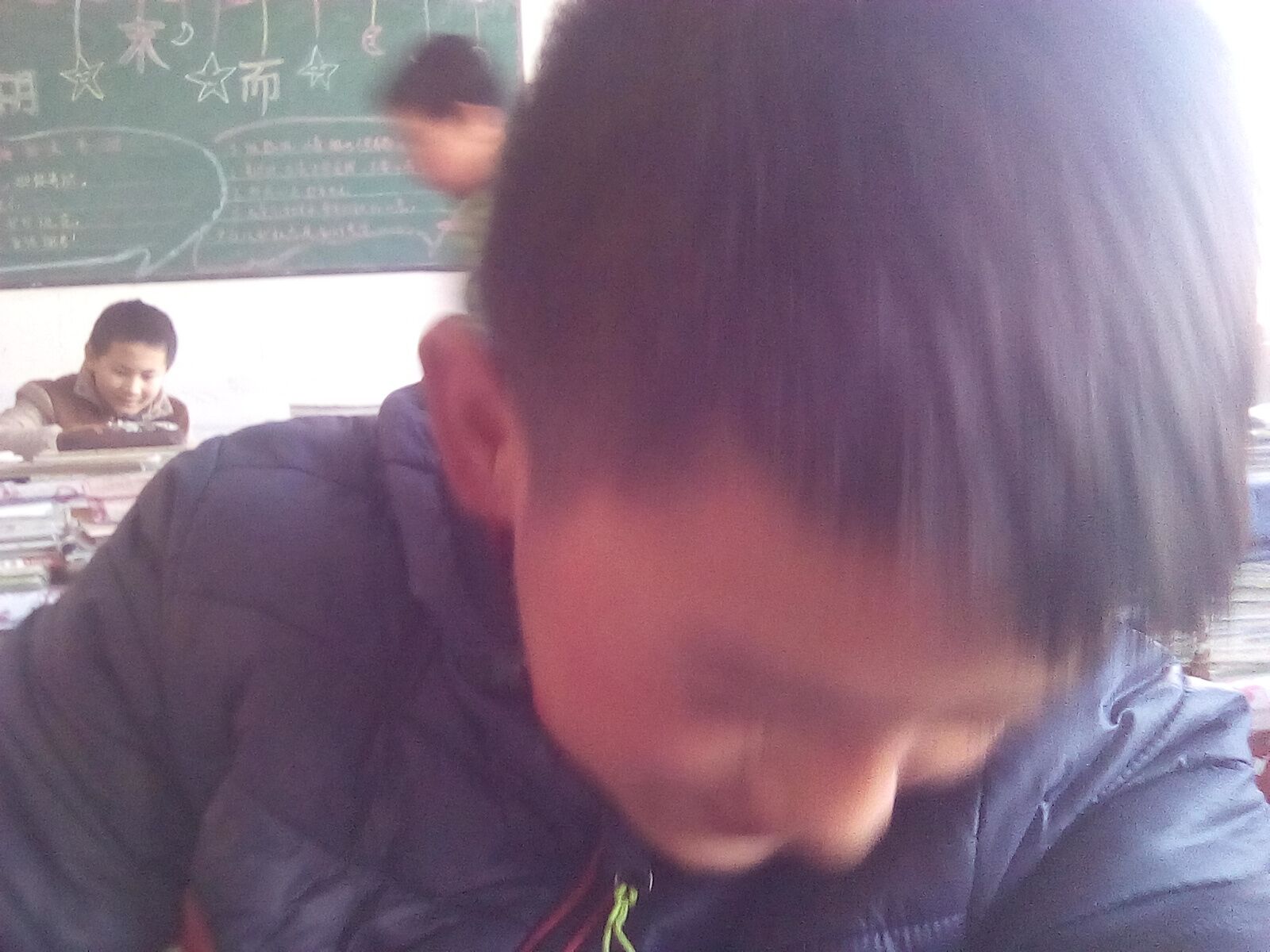 "跟着我左手右手一个慢动作,右手左手慢动作重播。哦,这首歌给你快乐,你有没有爱上我······"这首歌曲是从我们班里传出来的。他是我们班的音乐王子,也是我哥——张国吉。