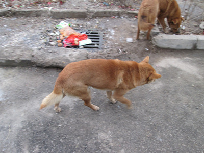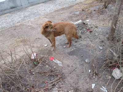 它从我的背后径直奔来,比汽车的速度还迅速,下一步就要开始了"咬人计划"。如果向前跑去结果只有一个——受到伤害,但周围又没有拐角的其它小巷……犹豫过后,我向前跑去。它的目光中充满愤怒、凶狠,像一个"地球终结者",脚下速度异常地快,好似被点了某一个穴位,停不下来。我不知道它是否向我奔来,所以故意站到一边,形成两个互相平行的点,谁知它还是如此"迷恋"我。前面有两条小巷,应该跑向哪边呢?对了,左边是道路方向,而且小路较多。生了病的狗依然保持着愤怒的状态,双眼通红。我利用地形巧妙地向左跑去,而那条狗依然直行。