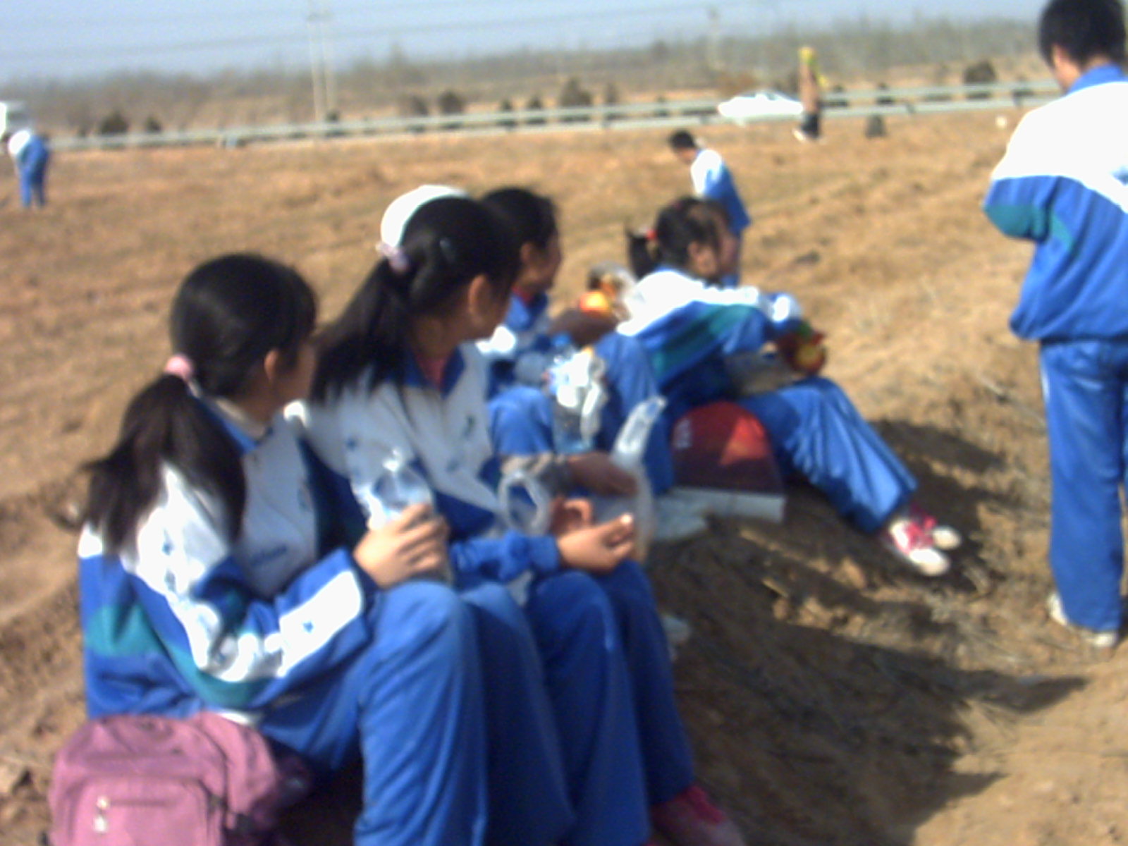 树,在通过大家的共同努力下,终于将树坑挖好。之后我们大家就坐在一起交换各自带来的