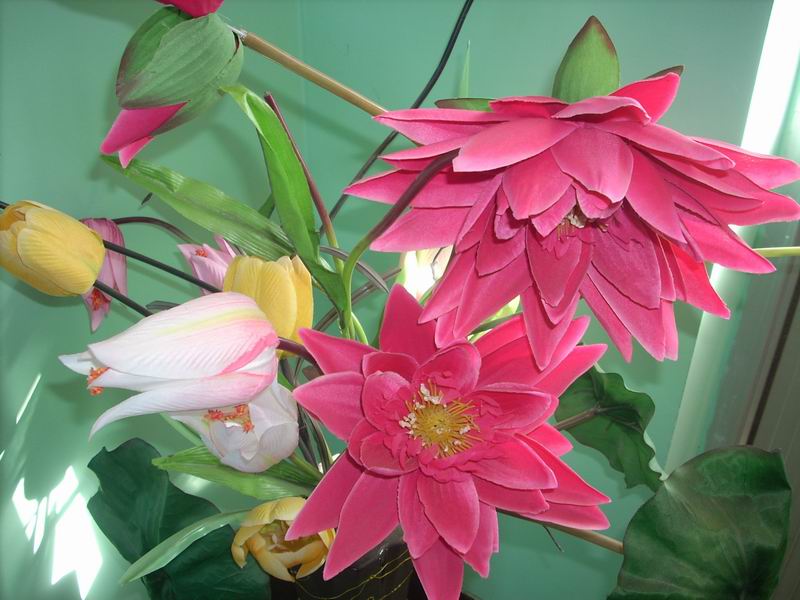 在这个美丽的地球上,有着千奇百态数不胜数的生物。花是其中的一种。就在每年的春天它们都会盛开,然而到了秋天大多数的花儿都调谢了。现在随着科学技术的不断提高,科学家为我们发明了塑料花。现在即使我们在大雪纷飞的冬天也能看到绽放的花朵。这不,这儿就是一些。你好好欣赏吧!