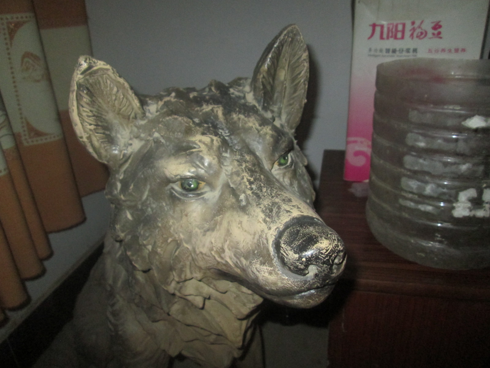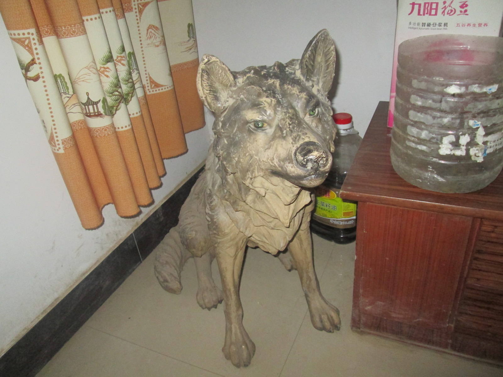 在我家里摆设着一只“假狼”,这只是一个模型而已,并不是真的。但是有好多小朋友来我家,看到这只狼都会害怕。