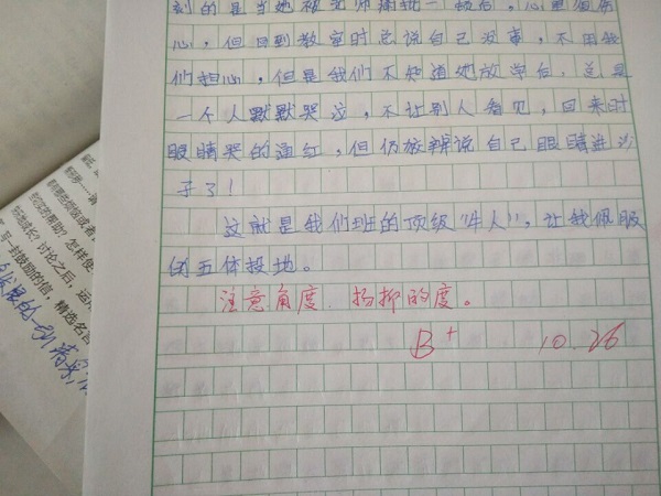 计划二 本班有很多同学他们的作文水平到了初中反而更加优秀,我一直想不明白为什么,于是我决定读读他们的作文再拿来和自己的作文作比较,以赏析的角度去分析他们的作文,以借鉴他们的优点。 作文水平倒是提高了不少,我也很开心,但是每次考试的作文成绩至少会扣上三、四分,看来我还要更加努力的提高自己的写作水平。作文,我发现自己开始有些喜欢你了!