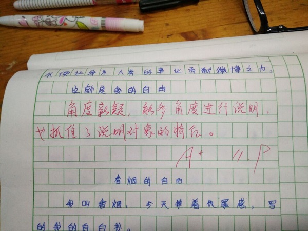 "爱恨"作文 作文是人们抒发情感,是人们记录所感所想,是人们说明事物的是人们证明论点的一种介质。它包含人们的各种情感,而我对它有一种矛盾的情感——"爱恨"之情。刚上初中时,我发现我小学自以为写得很好的作文是如此的幼稚荒唐,初中作文从零开始,我制定了一系列提升作文水平的计划。作文,你让我头疼。