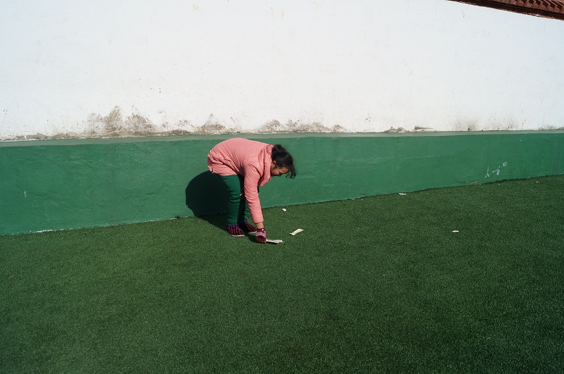她最爱帮助别人了。瞧,这不,又在帮值日生扫地。她狼吞虎咽的吃完饭,赶快跑到教室里扫地,每当我们问她为啥时,她说:没有什么,只是举手之劳而已,却换来了一片干净和整洁,难道这不值吗?