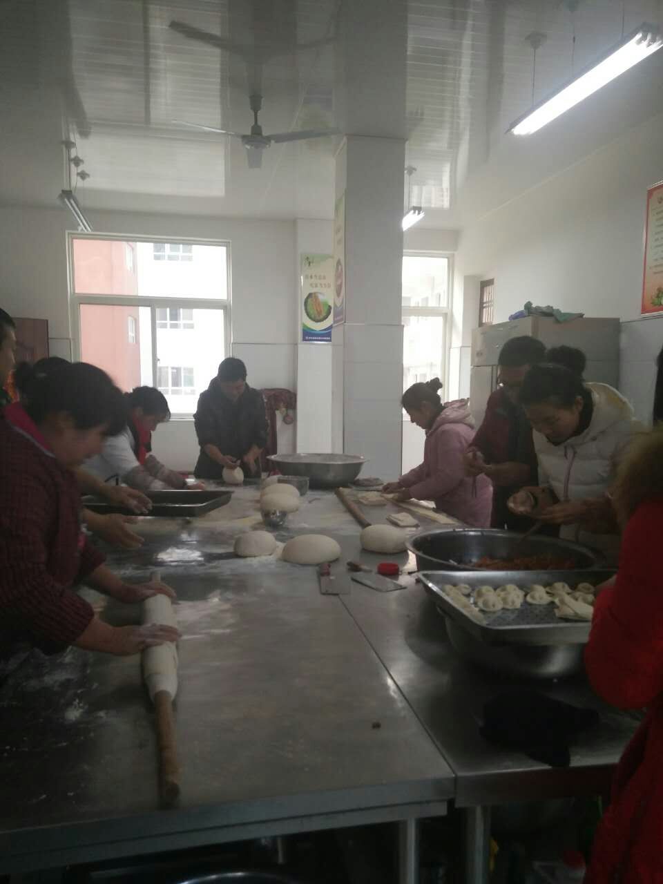 一切都准备好了,没课的老师来了,大家一边说家常,一边忙活着手里的饺子,可真热闹。