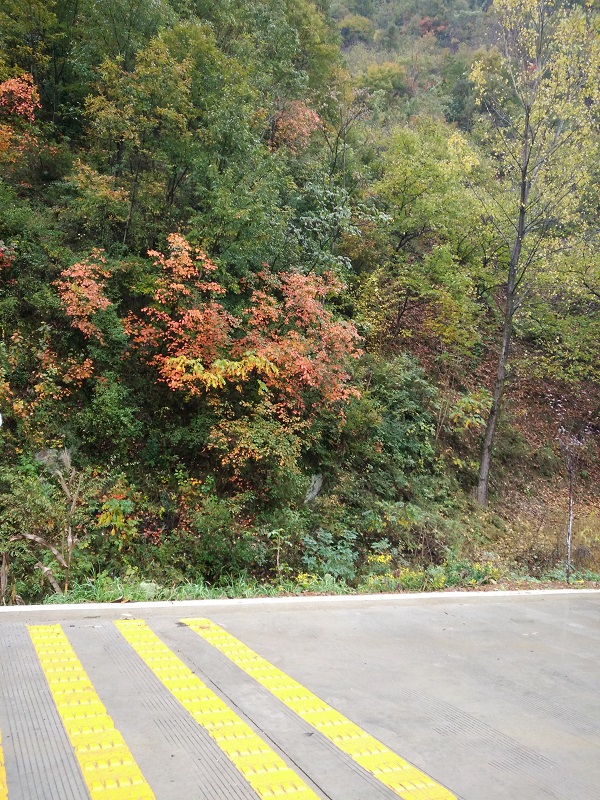 秋姑娘迈着轻盈的脚步来了!远处公路旁的大山,你瞧满山的树木一片绿色中夹杂着一团火红,像一片燃烧的火焰。一阵秋风吹过,树叶哗啦啦的唱着动听的歌。