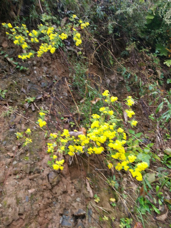 山坡边野菊花,你不让我,我不让你,一丛丛争相盛开着。为这清冷的秋天增添了几份独特的美。