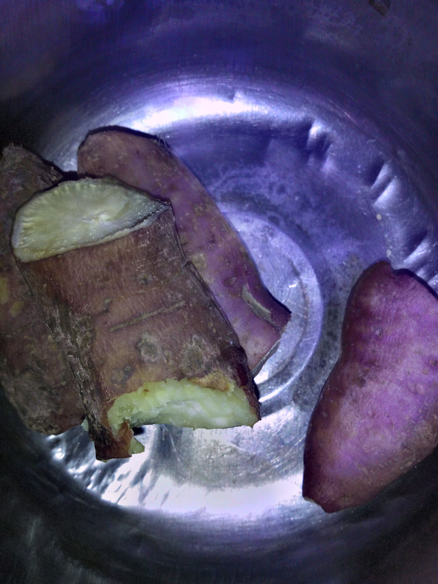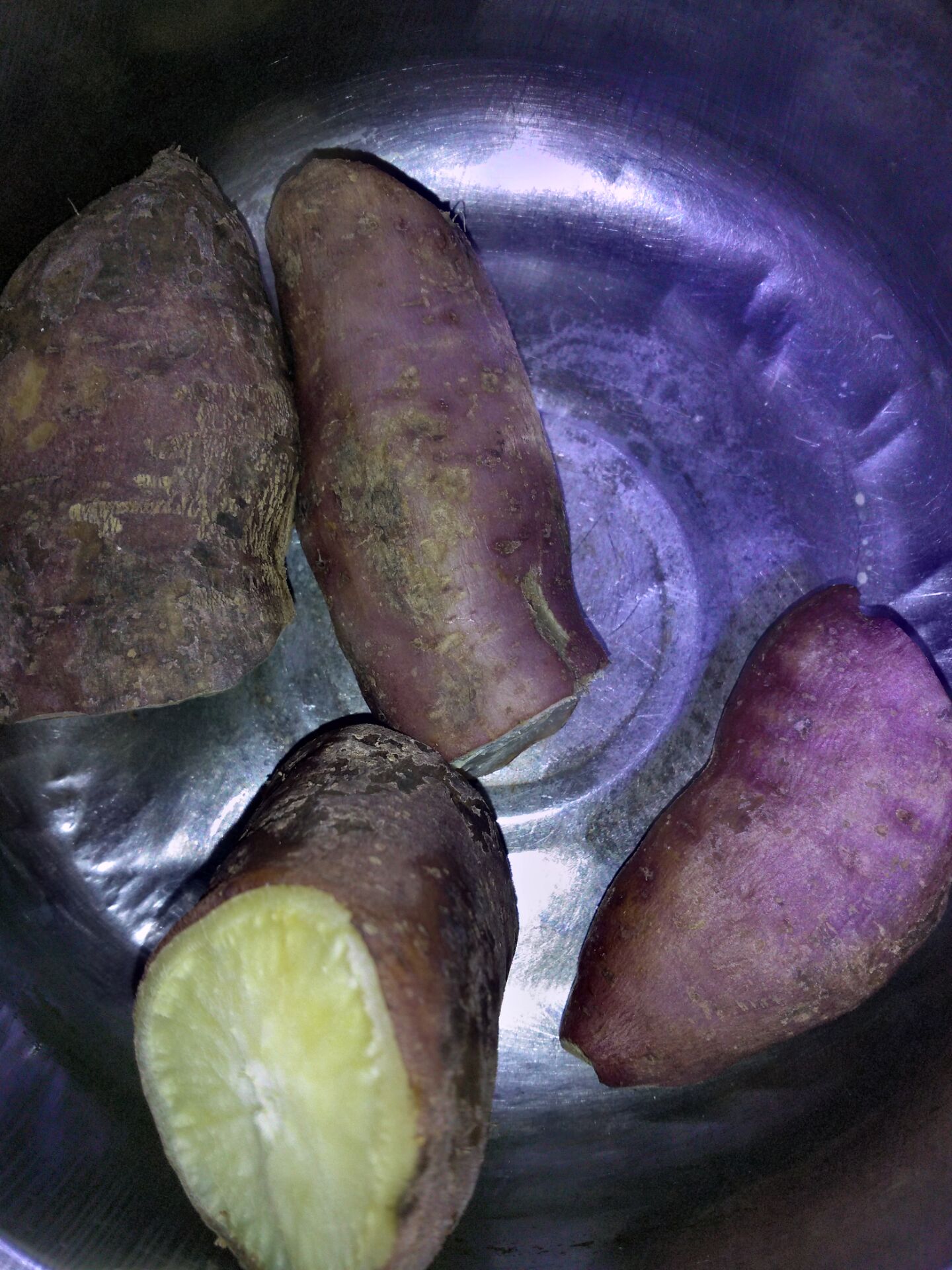 第二步:煮。煮就是再倒点水往锅里,把洗好的红薯放在里面煮。二十分钟后红薯就熟了。