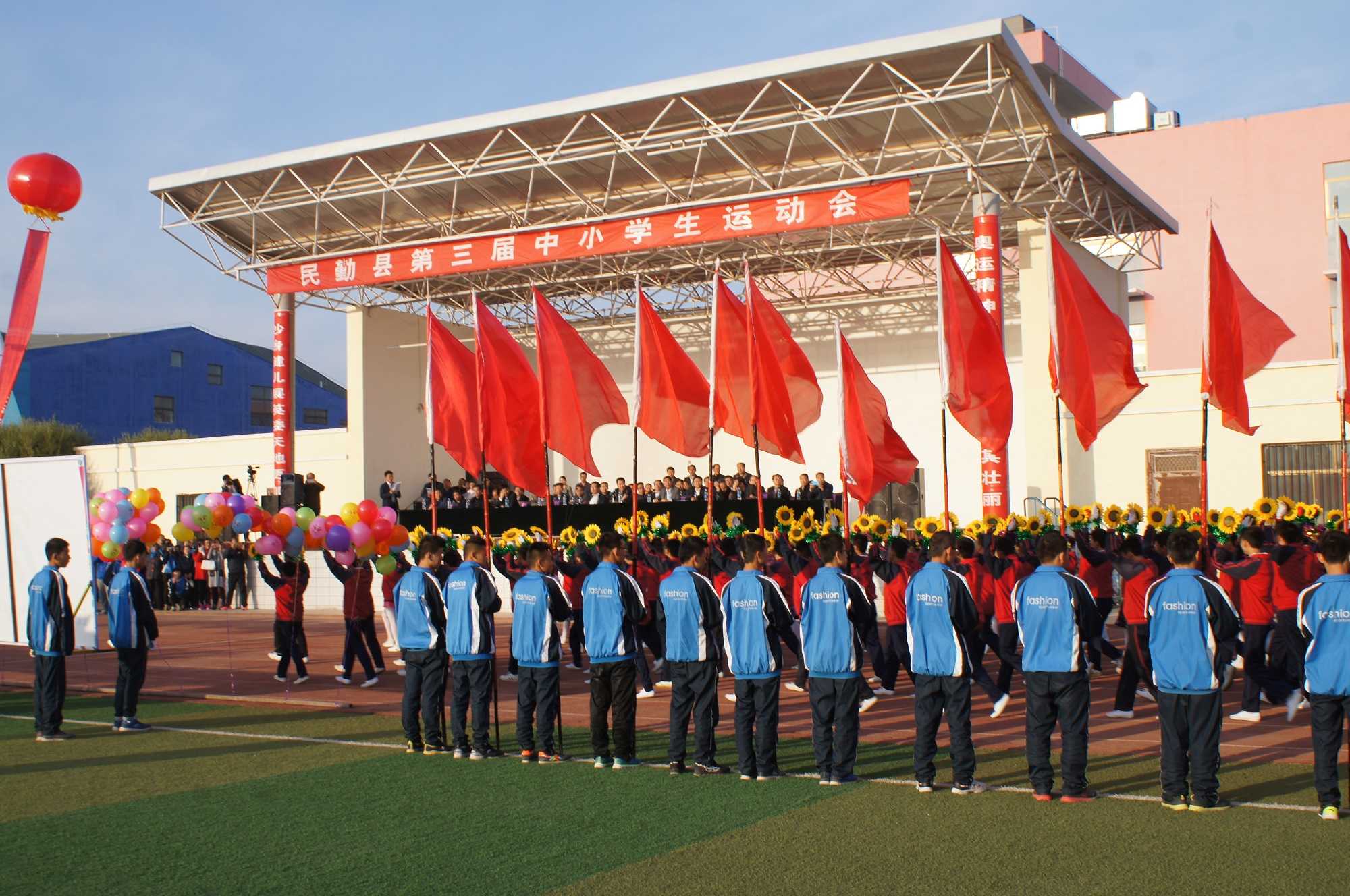 一年一度的"中小学生运动会"是我们翘首以盼的日子,因为到了开运动会的时候,我们就好像到了假期一样,可以不做作业,无忧无虑的安排自己的生活了。盼星星盼月亮,运动会正式开幕。在运动会的开幕式上红旗飘飘,播放着直冲云霄的运动员进行曲,老师和同学们神采飞扬。
