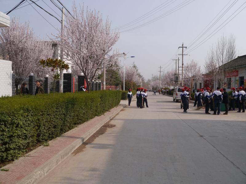 这天,春天的暖阳普照着大地,柳树的叶儿像女孩的眉毛一样刚刚秀出,红叶栗的白色小花挂满了整个树枝。扑鼻的香味让人陶醉,更招引来了一群群蜜蜂的祝兴。在这春暖花开的季节里,我们戴着小红帽,穿上干净整洁的校服,带上我们的清洁工具,在寇家河街道上,用我们的实际行动,为居民们打扫街道的卫生,向雷锋同志学习他的为人民服务的精神。