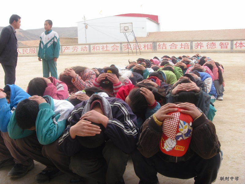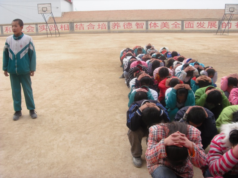 为了全校师生的安全,我们学校不定期组织"防震演练"