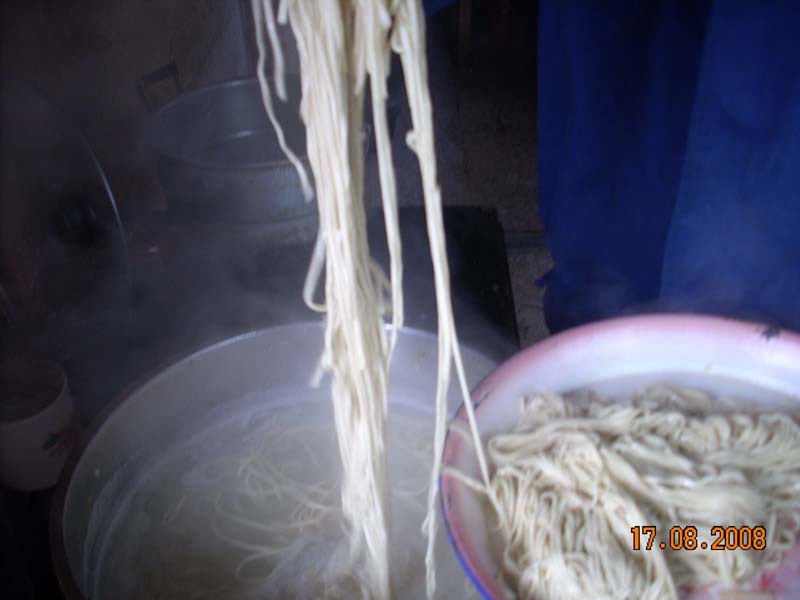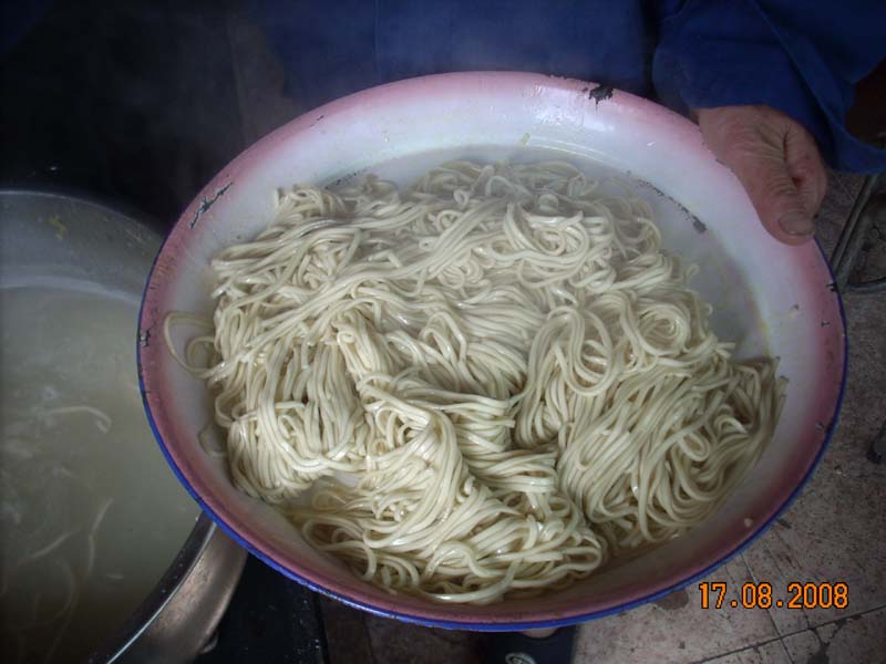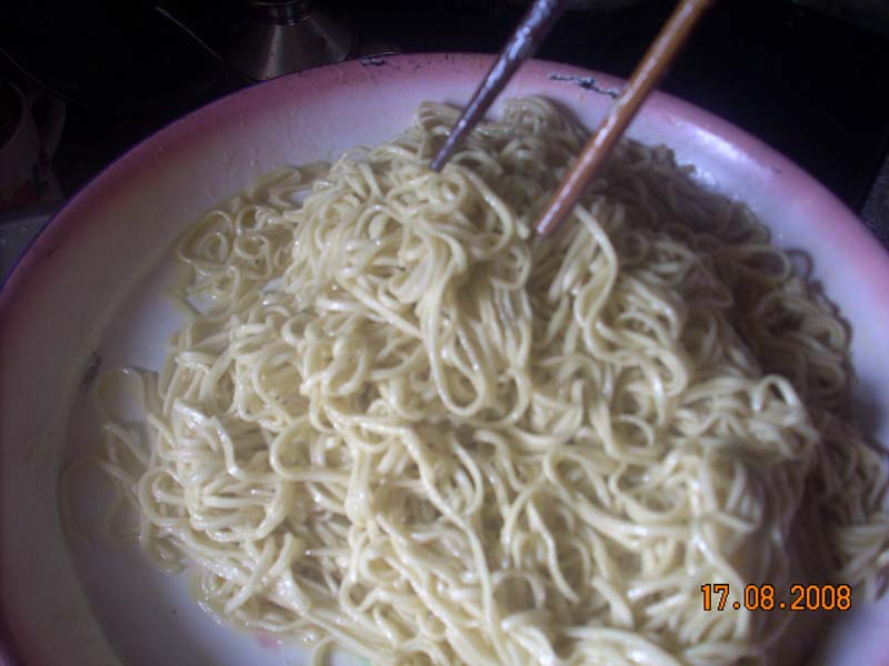 等到面条不是很热,就可以了。这样面条已经做好,剩下的任务就是装在碗里等待品尝。