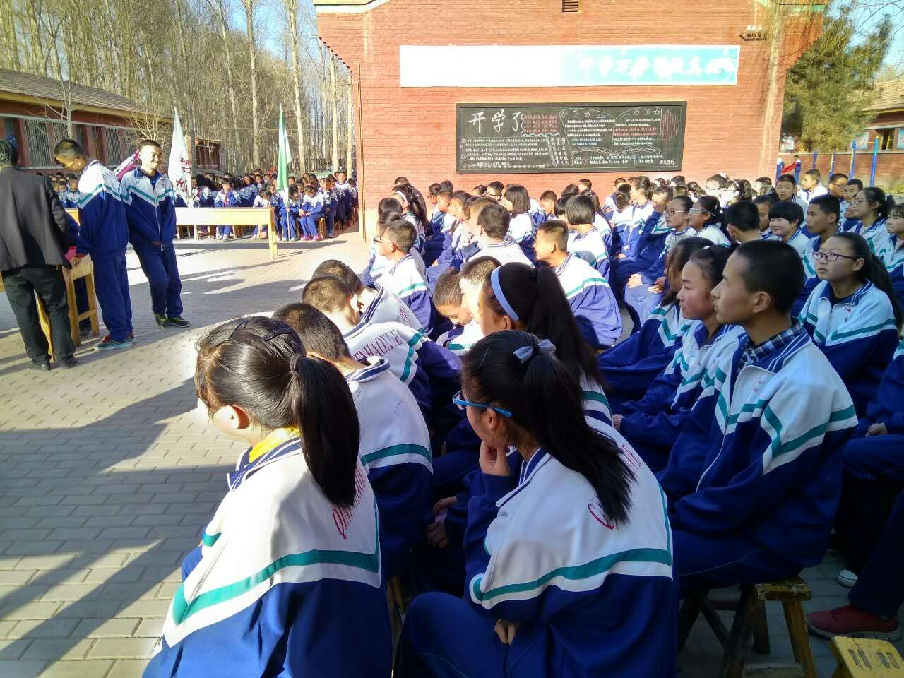 同学们陆陆续续来到了会议室门前,老师们还在精心布置会场。同学们寒假玩耍的心情还没有完全收回来,坐在一起,叽叽喳喳地聊起了假期生活。等到会场布置完毕,老师们庄严地坐在主席台前,同学们便悄然无声了。
