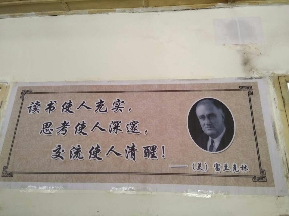 教室的西墙上张贴着富兰克林的名言:读书使人充实,思考使人深邃,交流使人清醒!学习之余我们便浏览名人名言,仔细体味其中之大意。名人名言也激励着我们克服了学习上一个又一个的困难。