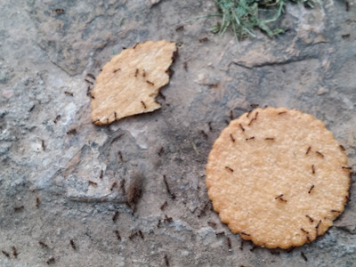 过了很长时间,饼干渣纹丝不动,小蚂蚁转过身爬回了洞。我见了,以为它会放弃这个饼干渣。没想到,洞里爬出一群蚂蚁,朝饼干渣爬去,原来,小蚂蚁去搬救兵了。只见,一群蚂蚁搬着饼干渣朝洞边爬去,不一会儿,就来到了洞边。但是,饼干渣太大了,这么小的蚂蚁是容不下的。我正准备帮助它们,忽然看见一只蚂蚁动了动触须,从饼干渣上咬下一小块往洞里爬去,其他蚂蚁也照样做。一分钟过去了,蚂蚁们把饼干渣运回了洞。看到这,我被小蚂蚁团结的精神所感动。